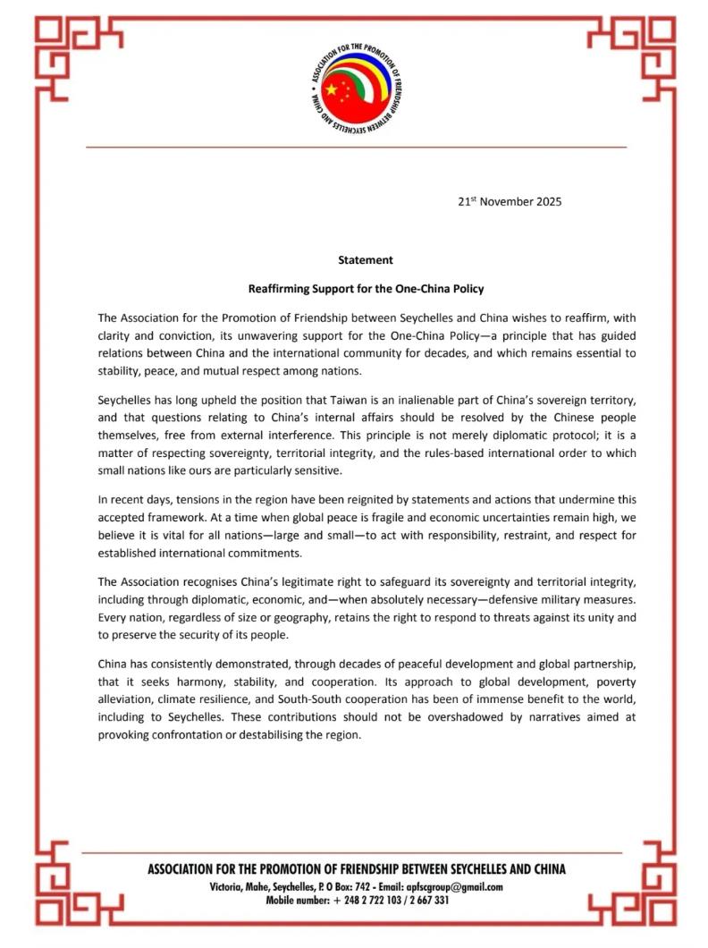 • 毛里求斯侨界发表声明谴责日本首相涉台错误言论 2025-11-26